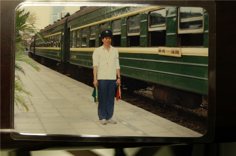 90年代,廣深線開(kāi)行的列車為綠皮火車。圖中站內(nèi)指揮員引導(dǎo)列車