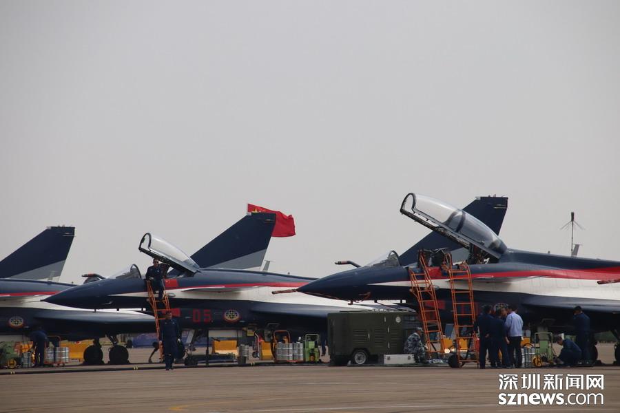 完成飛行表演,在停機坪上的殲-10。