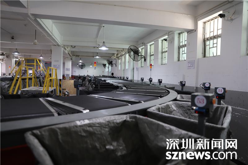 營運部內(nèi)的智能分揀機,安裝有80個分揀口