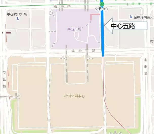 高交會期間,在福華三路北側(cè)設大巴停靠站,南側(cè)設的士上落站,公交大巴從金田路進入福華三路并在站點上下客,的士車輛均由益田路方向駛?cè)?,自金田路駛出并在指定站點排隊候客。