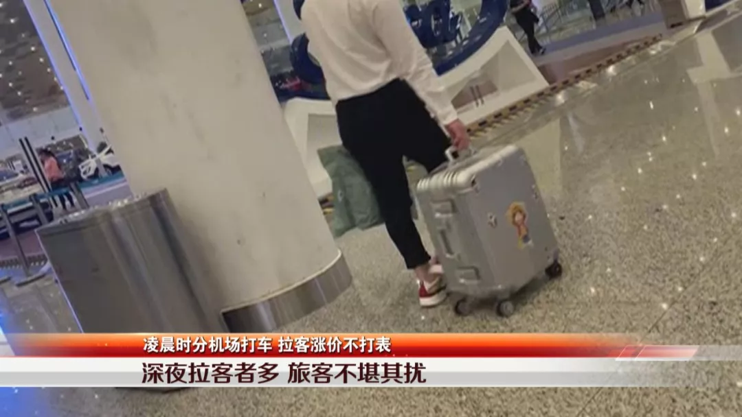 針對(duì)黃先生反映的情況,記者在晚上11點(diǎn)鐘來(lái)到機(jī)場(chǎng)實(shí)地調(diào)查。在機(jī)場(chǎng)到達(dá)大廳的出入口,記者看到兩名男子站在出口位置,詢(xún)問(wèn)出來(lái)的旅客,是否需要打車(chē),一看到附近有機(jī)場(chǎng)安保人員出現(xiàn),兩名男子便立刻轉(zhuǎn)身離開(kāi)。