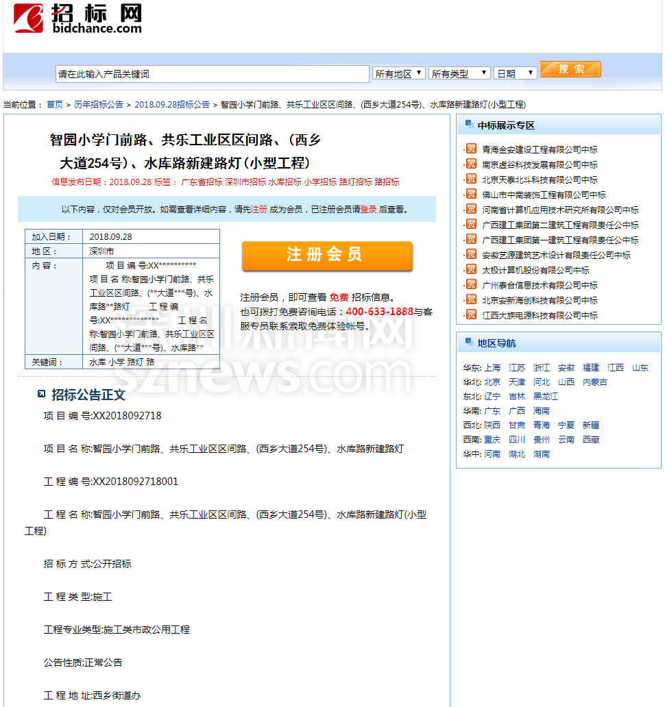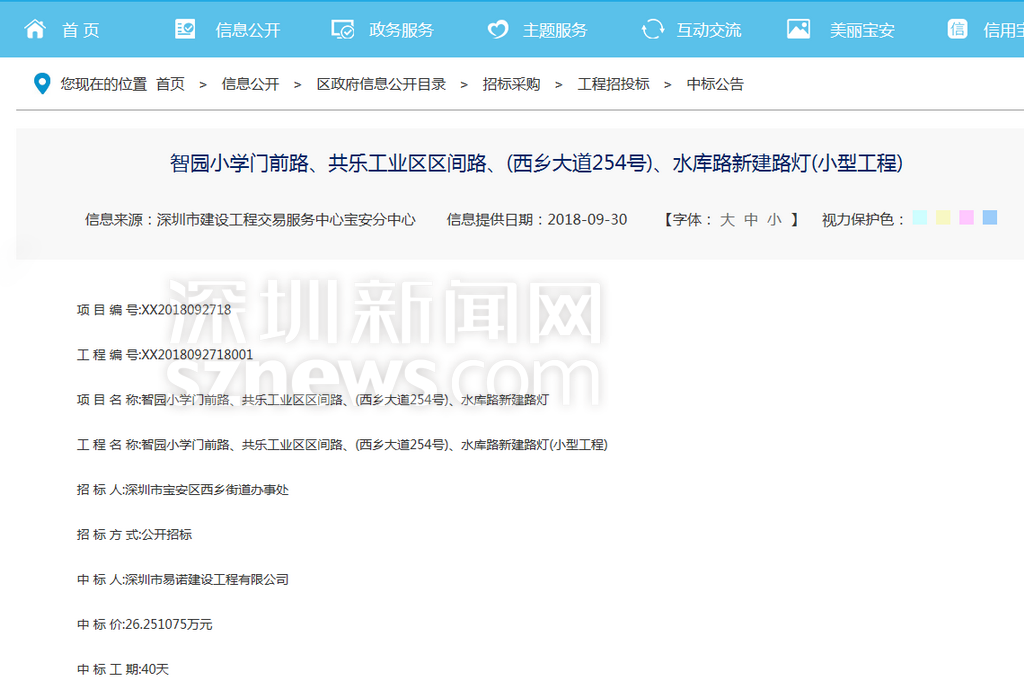 針對網(wǎng)友反映的情況,記者查閱相關(guān)資料發(fā)現(xiàn),寶安智園小學門前的施工工程于2018年9月28日公開招標。
