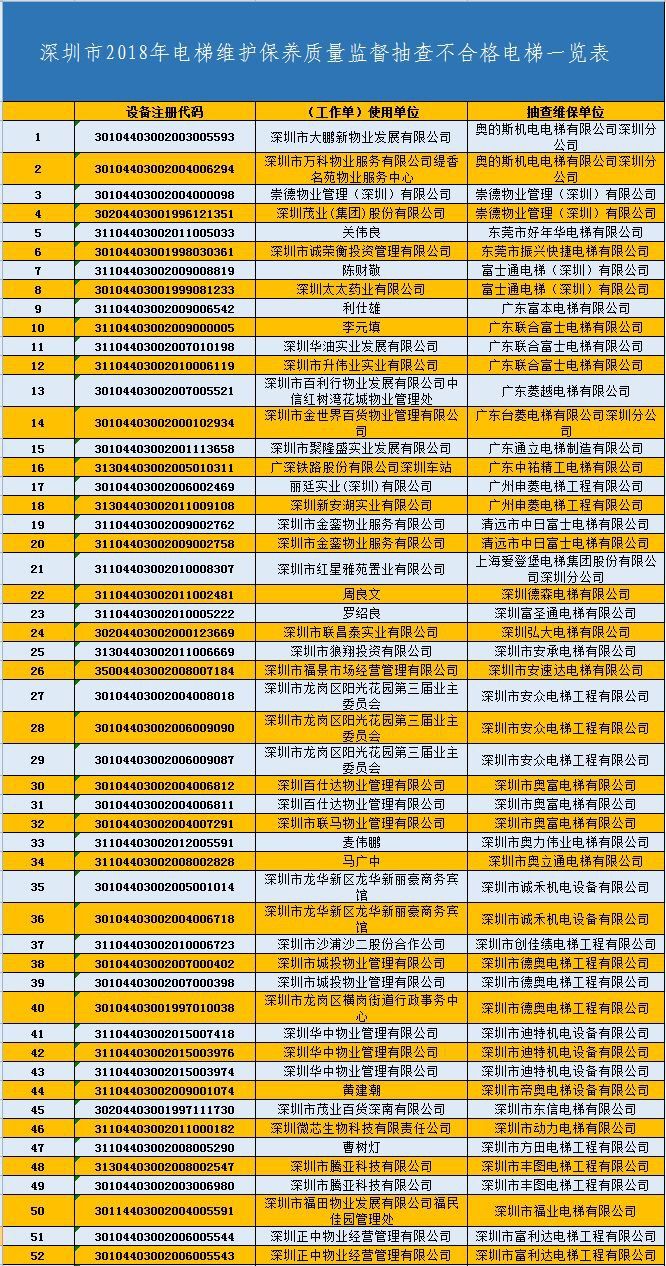 記者從市市場和質量監(jiān)管委了解到:該委組織開展了電梯維修保養(yǎng)質量監(jiān)督抽查工作,電梯抽檢合格率約為97.8%,6家不合格電梯維保單位被曝光。