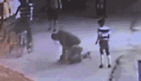 將小月按倒在地后,一名成年男子對(duì)著孩子的頭部打了五拳,看到圍觀市民越來越多,男子帶著身邊的男孩離開。