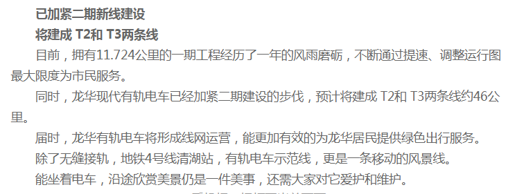 龍華有軌電車也將加緊建設(shè),建成T2和 T3兩條線