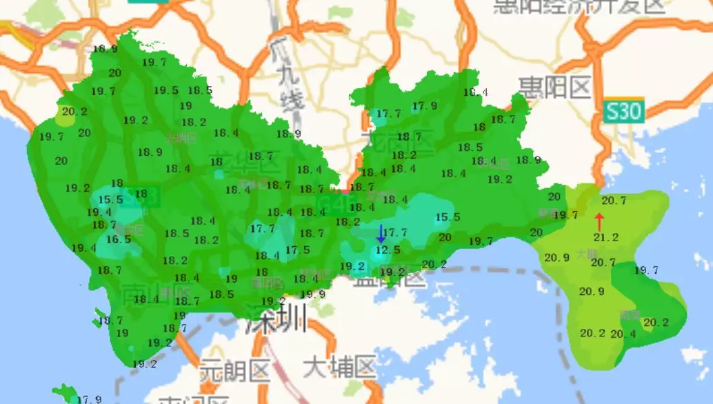 按照連續(xù)5天滑動平均氣溫低于22 ℃的"入秋"標(biāo)準(zhǔn),深圳平均入秋時間為11月3日。19~23日的平均氣溫在22 ℃以下,其中22日平均氣溫低于22 ℃,成為入秋日,比平均入秋時間偏晚了19天。