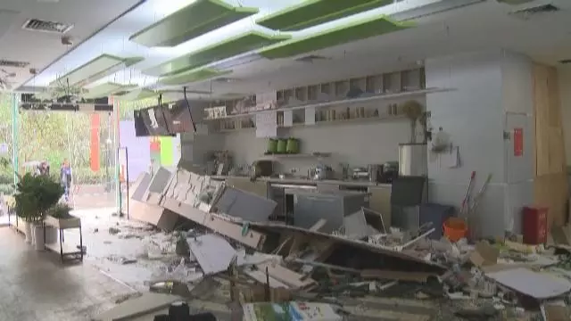 今天上午,記者來(lái)到該家飲品店,此時(shí),店里是一片狼藉,玻璃碎片散落一地,飲品店四周也拉起了警戒線。