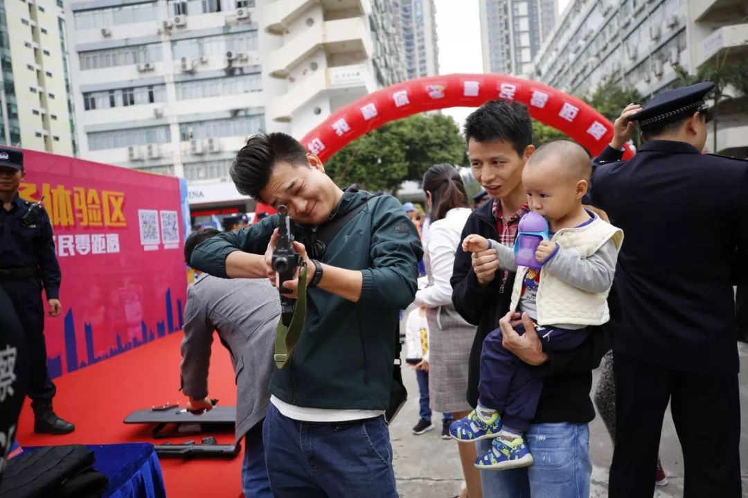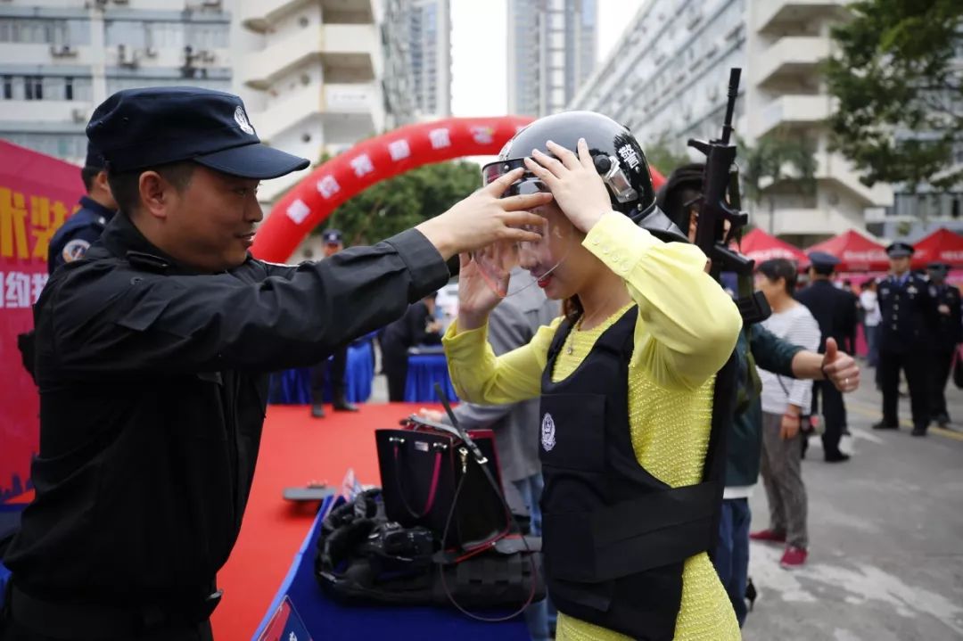 防暴盾牌、槍支警械威武霸氣,隊(duì)列棍術(shù)、擒拿格斗輪番上陣。很多人興致勃勃地穿戴警用裝備,頭戴鋼盔、身穿警服,登上反恐敞篷車拍照留念,圓夢(mèng)警察夢(mèng)想。