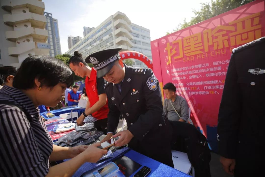 深圳市公安局指揮部有獎(jiǎng)舉報(bào)中心聯(lián)合福田公安分局開展“有獎(jiǎng)舉報(bào)”宣傳活動(dòng),民警現(xiàn)場(chǎng)發(fā)放宣傳資料,積極發(fā)動(dòng)群眾踴躍舉報(bào),不斷提高群眾對(duì)掃黑除惡專項(xiàng)斗爭(zhēng)的知曉度,市民咨詢不斷,形成了對(duì)黑惡勢(shì)力“零容忍”和人人喊打的良好氛圍。