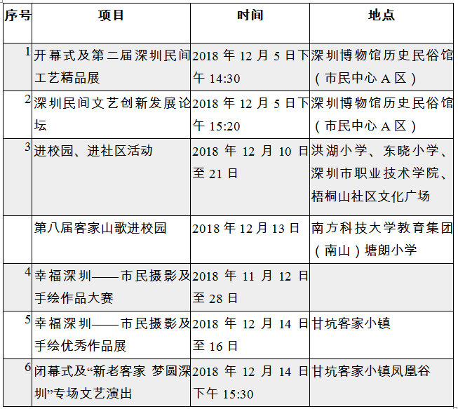 幸福客家——深圳市第十二屆客家文化節(jié)活動(dòng)一覽表