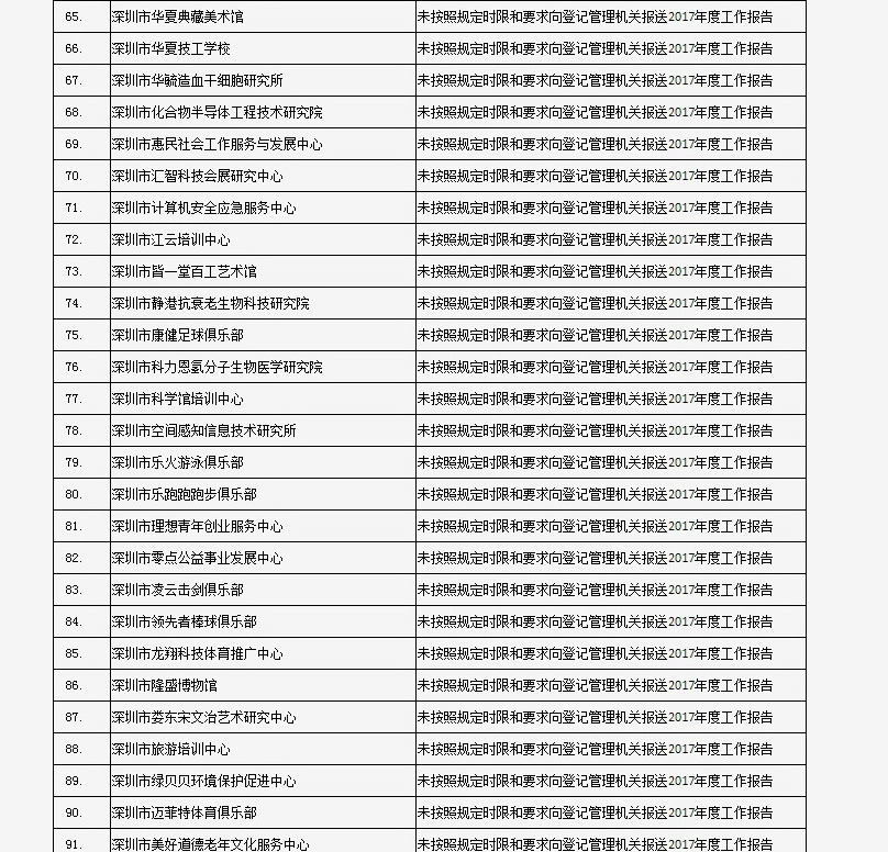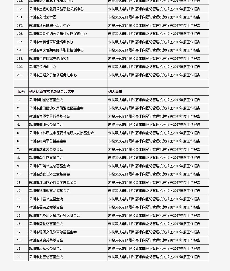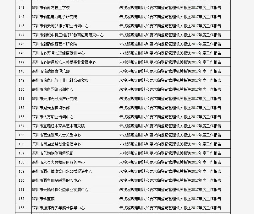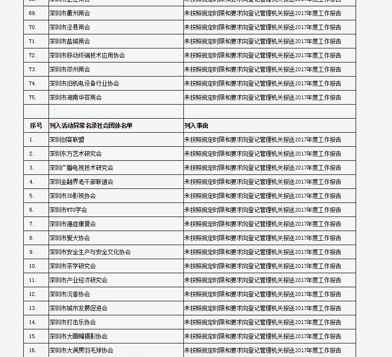 列入社會(huì)組織活動(dòng)異常名錄 來源:深圳市民政局
