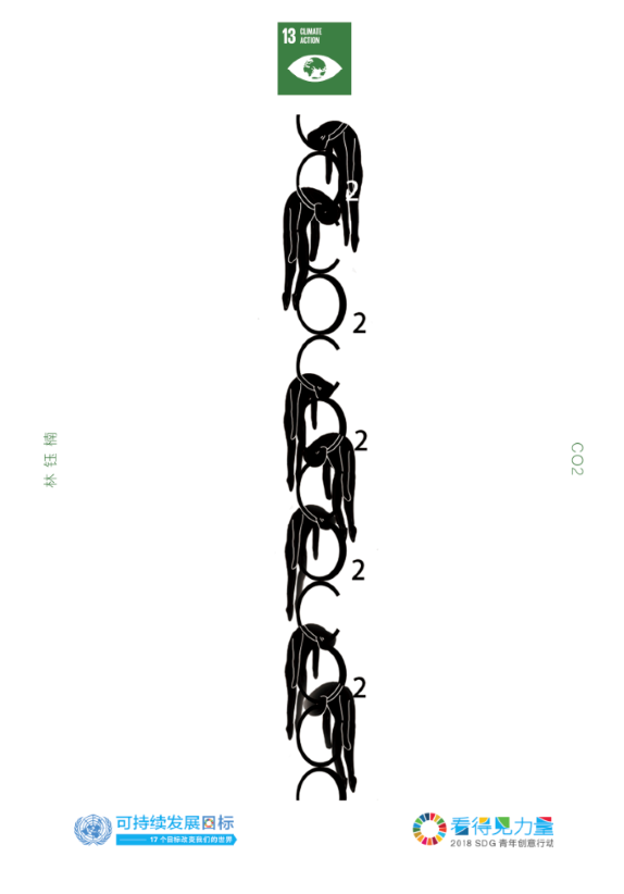 作品解釋 /海報(bào)的內(nèi)容是CO2形狀的繩索將人類吊起窒息而死的畫面以此呼吁人類重視二氧化碳問題帶來(lái)的危害。