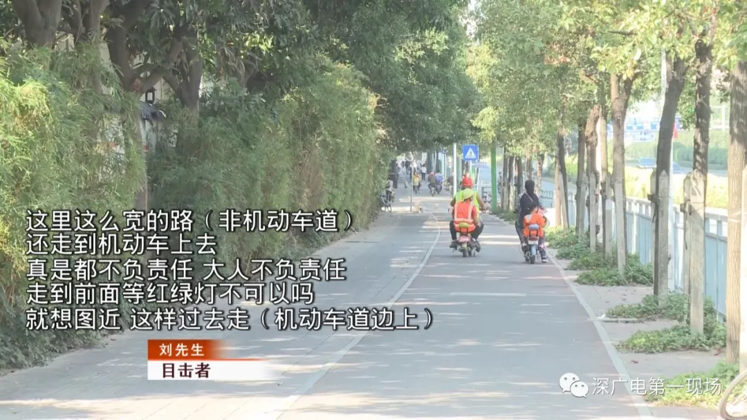 今天上午記者來到了事發(fā)現(xiàn)場,寶安大道和新安六路的交匯口。在現(xiàn)場,電動車違規(guī)現(xiàn)象嚴(yán)重:走機(jī)動車道、不戴頭盔、違規(guī)載人、不等紅燈的現(xiàn)象比比皆是,甚至出現(xiàn)了逆行的情況。雖然設(shè)置了非機(jī)動車道,但使用者寥寥無幾。