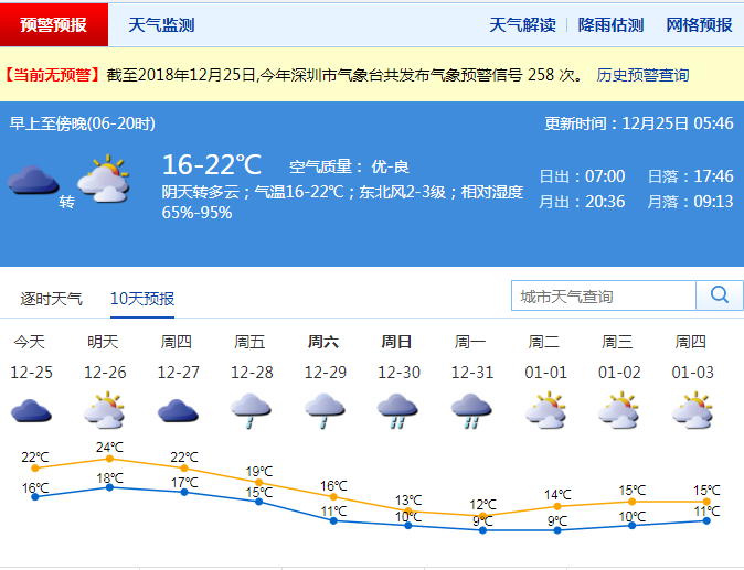 深圳今日回暖可見(jiàn)陽(yáng)光 本周五起氣溫下降 最低溫僅10℃