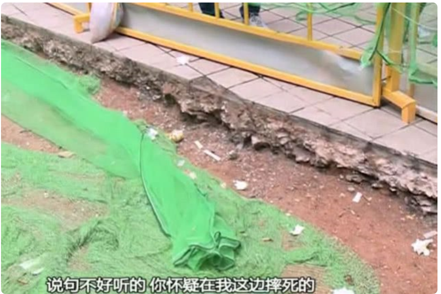 監(jiān)控視頻可見,當時地面開挖的位置確實沒有完全圍蔽起來,護欄前亦未見警示語。