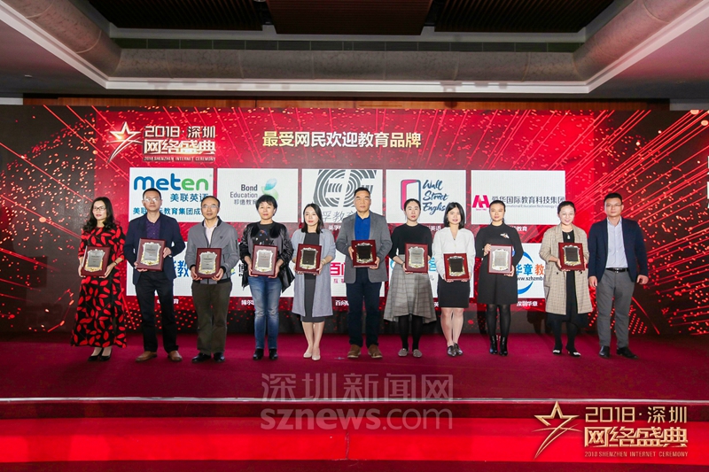 “十大行業(yè)最受網(wǎng)民歡迎品牌”獎(jiǎng)項(xiàng)(教育)獲獎(jiǎng)代表上臺(tái)領(lǐng)獎(jiǎng)