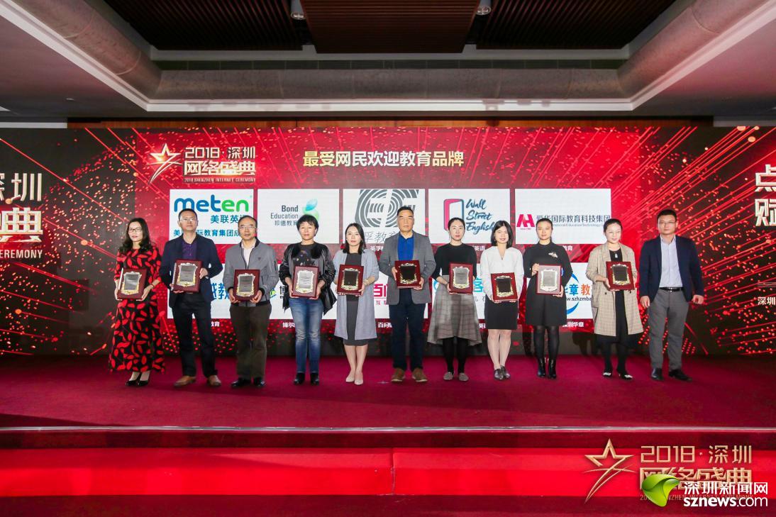 12月26日,“2018年度教育行業(yè)最受網(wǎng)民歡迎品牌”獲獎名錄于“2018深圳網(wǎng)絡(luò)盛典”活動現(xiàn)場正式對外公布。卓越教育、英孚教育、華爾街英語、愛華國際教育科技集團、邦德教育、博爾思教育、百問輔導(dǎo)、深圳華章、說客英語、美聯(lián)英語等教育行業(yè)的10個品牌獲得“2018年度教育行業(yè)最受網(wǎng)民歡迎品牌”榮譽稱號,各事業(yè)單位代表、企業(yè)代表近300余人參加了盛典。