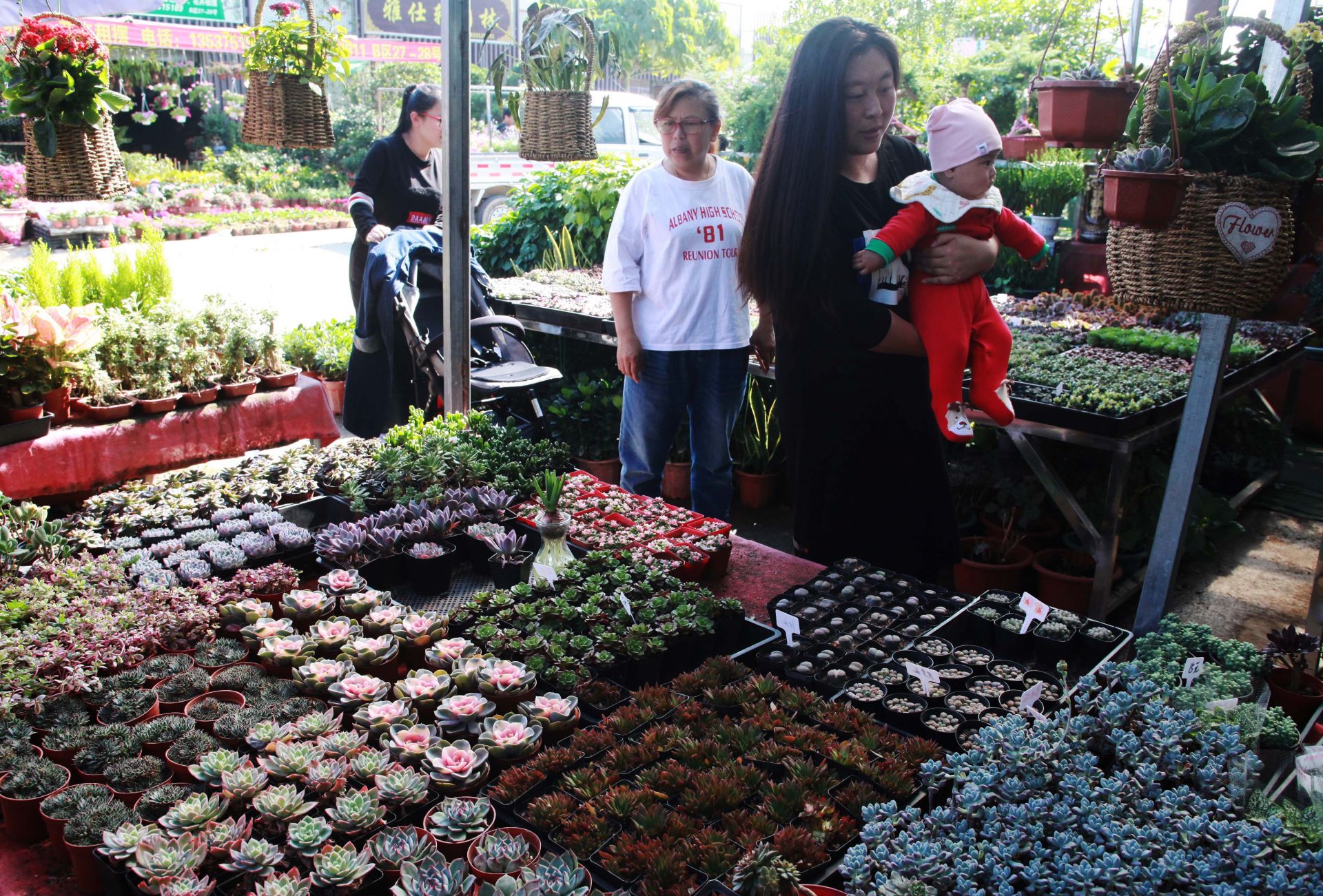 當天的龍崗東部花卉世界,到處花團錦簇,一盆盆顏色各異的年花喜迎初春,整個市場充滿了春天蓬勃的氣息?;ㄞr(nóng)們正忙著搬運、擺放盆栽,不時有市民前來問詢,花卉運輸一輛接一輛車,絡繹不絕,往來的客商頻頻詢問價格,已經(jīng)搶占先機的客商興高采烈地精心挑選,包裝搬運……