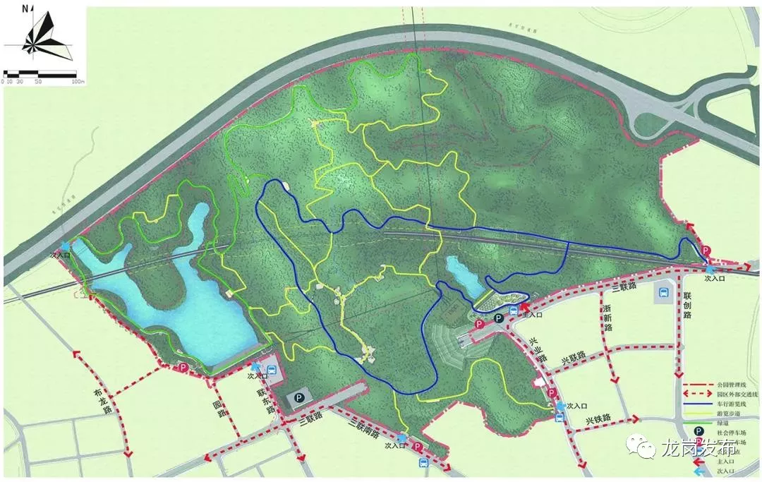 公園內(nèi)的道路系統(tǒng)路可分為車行道、休閑步道、登山道和自行車道。