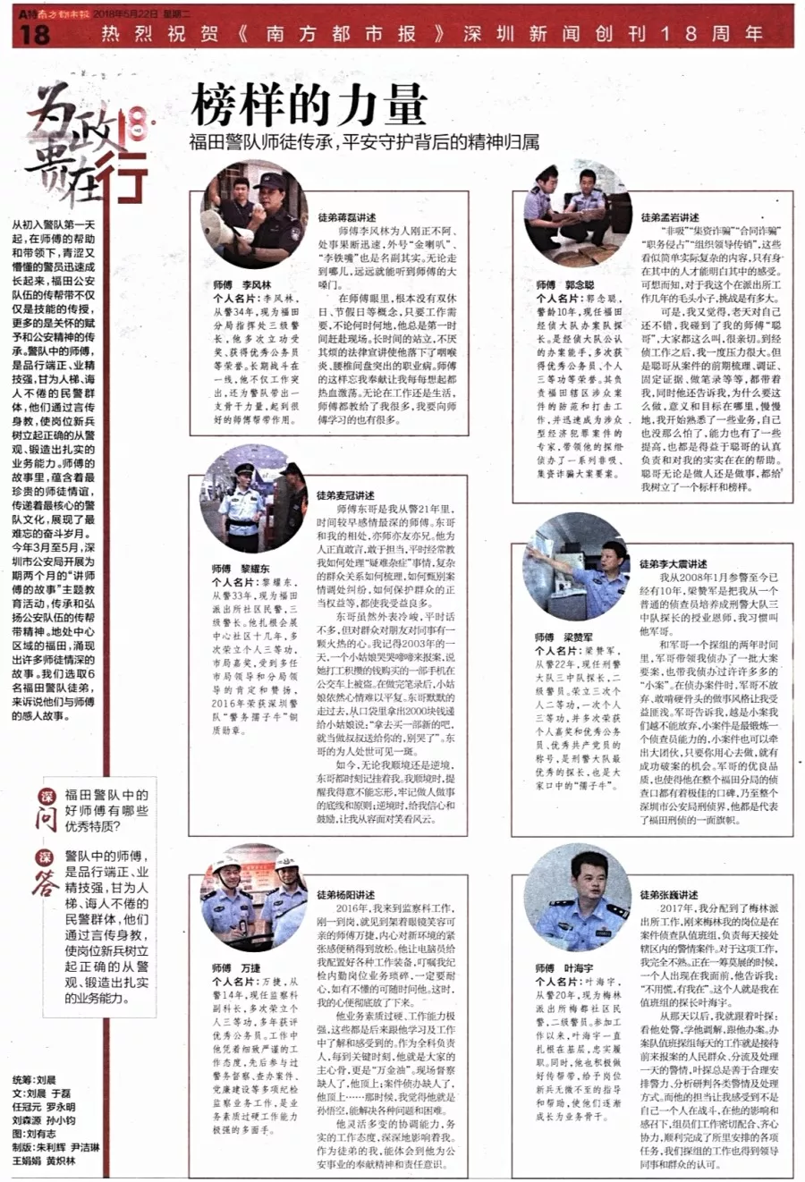 ★★薪火相傳,講述新時代警營師徒故事。他們是師傅更是帶頭人,榜樣的力量無窮。福田警隊高度重視傳幫帶,繼承光榮傳統(tǒng),鍛造業(yè)務能力,傳遞戰(zhàn)友情誼。