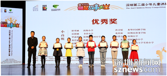 活動(dòng)期間,大賽主辦方還為參加此次活動(dòng)的學(xué)校、老師和小選手們頒發(fā)了最佳組織獎(jiǎng)、優(yōu)秀指導(dǎo)老師、優(yōu)秀獎(jiǎng)等獎(jiǎng)項(xiàng),從校園賽區(qū)、寶安分賽區(qū)、羅湖分賽區(qū)、中行專場(chǎng)、深圳新聞網(wǎng)線上海選晉級(jí)到深圳市復(fù)賽的每一位選手都獲得了參賽證明。一等獎(jiǎng)獲得者彭妙琪在采訪中表示,“很榮幸獲得‘故事大王’稱號(hào),這個(gè)比賽不僅讓自己聽到了更多的故事,還能增長(zhǎng)見識(shí),讓我們知道自己的不足,相信明年會(huì)有更多的選手加入這個(gè)舞臺(tái)?!?/p>