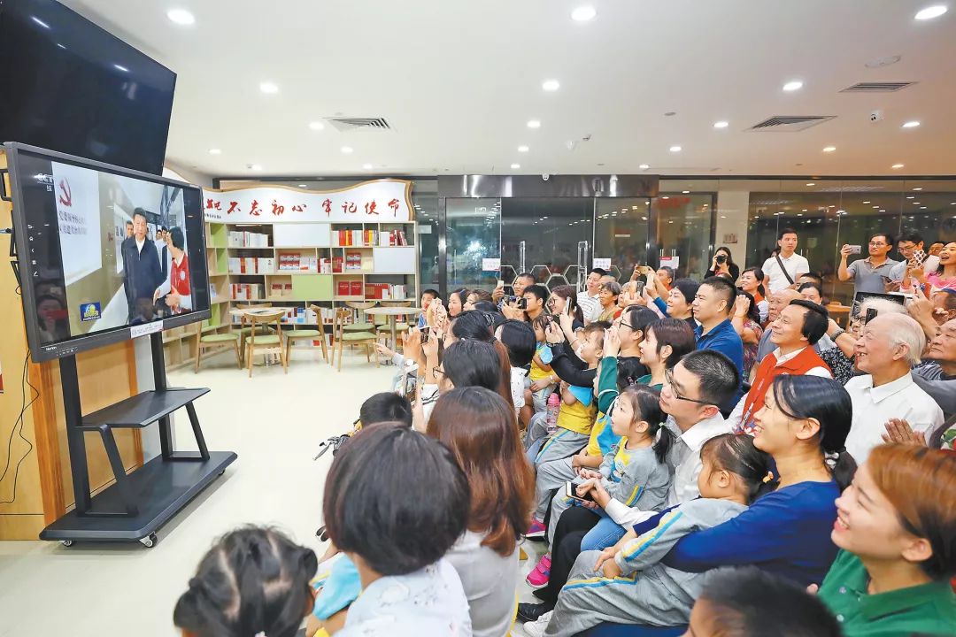社區(qū)群眾在深圳北站黨群服務(wù)中心觀看習(xí)近平總書記在廣東視察的新聞。