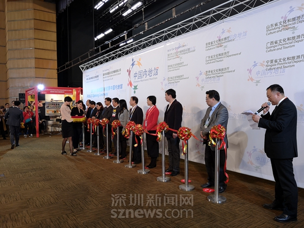 深圳報(bào)業(yè)集團(tuán)總經(jīng)理、深圳華薈國(guó)際文化傳播有限公司董事長(zhǎng)王躍軍等為內(nèi)地館開(kāi)館剪彩