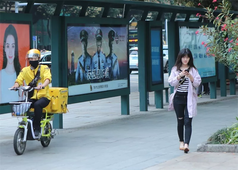 為擴(kuò)大反詐騙宣傳力度,福田警方充分發(fā)揮媒體效應(yīng),邀請(qǐng)深圳電視臺(tái)著名主持人為福田反信息詐騙宣傳代言,拍攝反詐案例回顧、反詐宣傳公益片等,在深圳各電視頻道、地鐵、公交、大型商圈LED屏幕、社區(qū)充電站廣告屏及歌舞、桑拿、酒店等場(chǎng)所移動(dòng)電視滾動(dòng)播出,隨時(shí)隨地提醒市民防范。同時(shí),福田警方還與深圳地鐵媒體公司合作,在地鐵站設(shè)置反詐騙宣傳框架告144 塊,在轄區(qū)30個(gè)重點(diǎn)公交站臺(tái)告牌投放宣傳海報(bào),在“福田警察”、“福田反詐騙”微信公眾號(hào)推送防范文章190篇。
