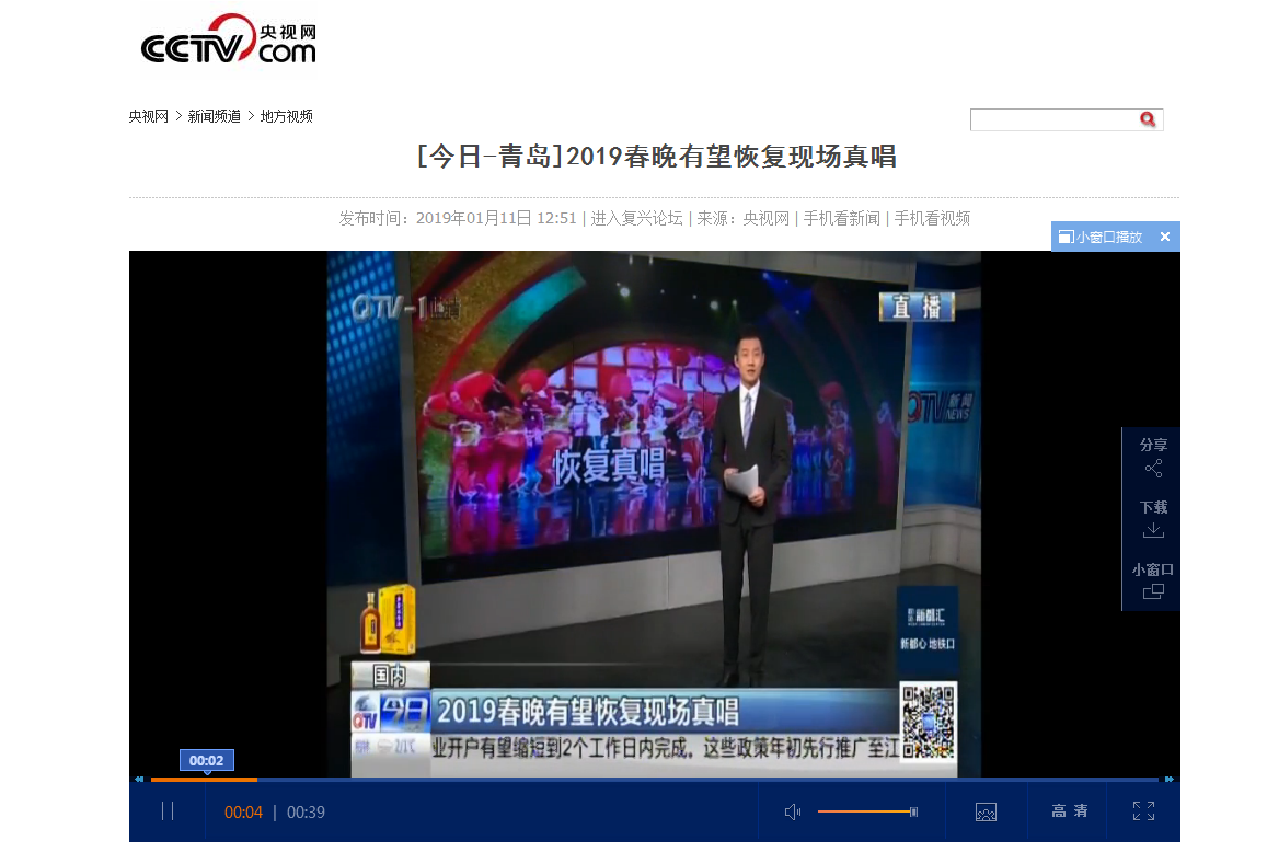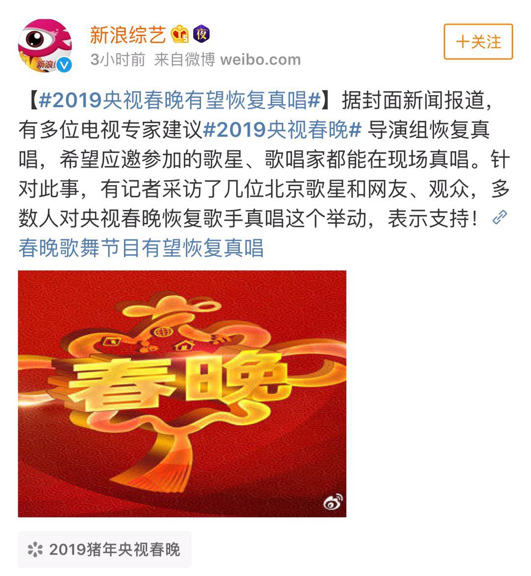 還 據(jù)說,2019央視春晚有望恢復真唱