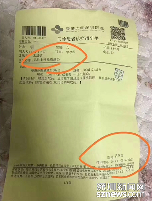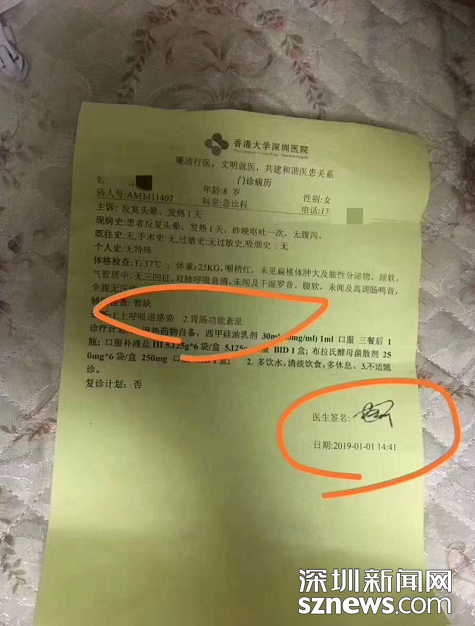1月1日、2日,市民章先生的女兒因發(fā)燒在港大深圳醫(yī)院治療時,被診斷為上呼吸道感染和胃腸功能紊亂。遵照醫(yī)囑吃完藥后,其女兒病情突然惡化,于1月3日死亡。