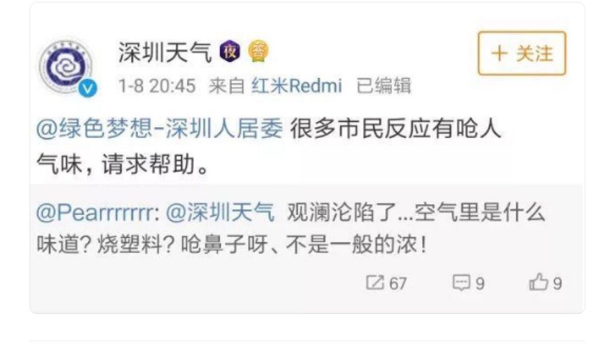 本秀兒最近嗅到深圳部分地區(qū)空氣里有嗆人氣味