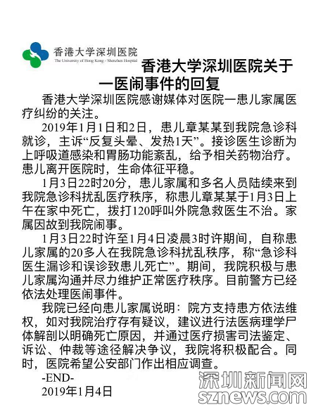 對此,港大深圳醫(yī)院回應:患兒離院時生命體征平穩(wěn),支持患方依法維權(quán)