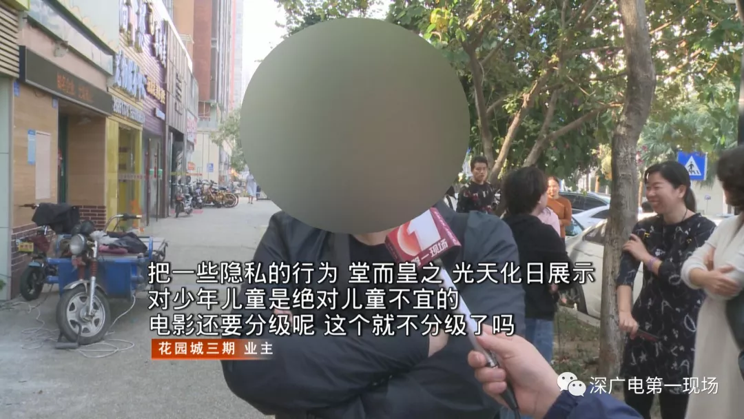 由于這個(gè)新店還處在裝修階段,暫時(shí)沒能看到業(yè)主口中說的露骨畫面和廣告。不過業(yè)主說,即便沒有開業(yè),已經(jīng)有孩子開始向家長好奇的詢問,這也讓家長們十分尷尬。
