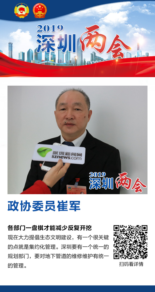 深圳新聞網2019年1月17日訊 深圳市政協(xié)六屆五次會議1月16日開幕,記者就全市范圍內出現(xiàn)的道路反復開挖向政協(xié)委員們征求解決良方,委員們表示,在(道路反復開挖)這件事情上,我們每個人都是受害者。只有各部門一盤棋,讓規(guī)劃更有前瞻性,讓城市建設慢下來,才能解決問題,減少給市民生活帶來的各種不便。下面讓我們一起來看看委員們的觀點。