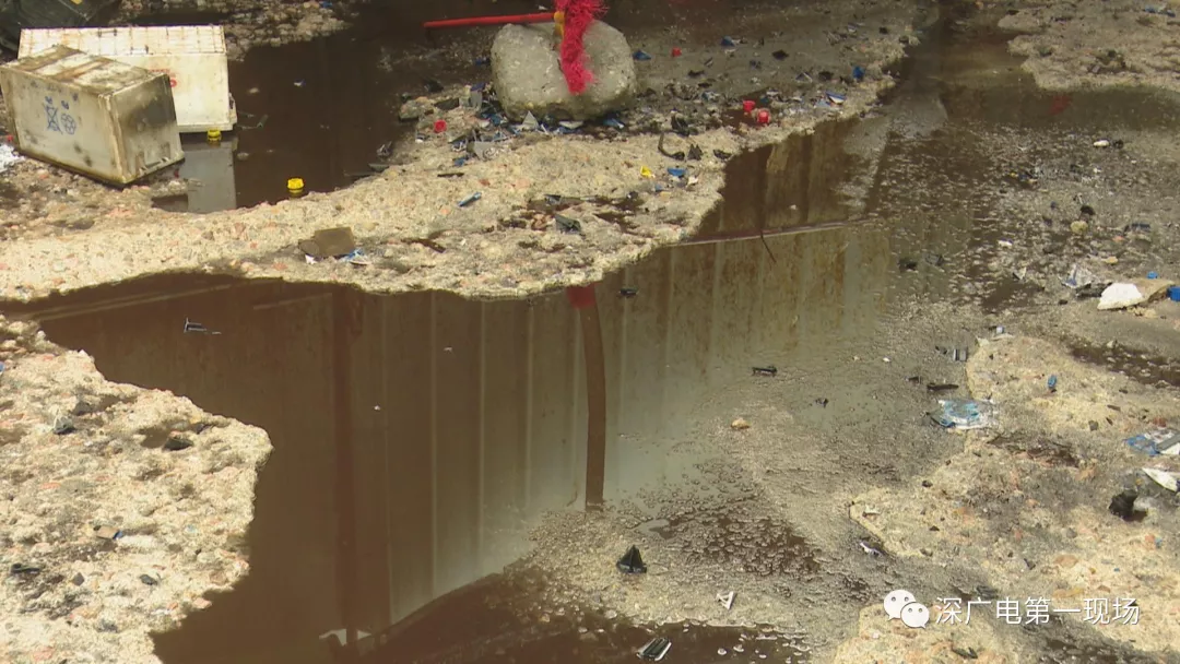現(xiàn)場地表和圍擋的金屬,都已被強腐蝕性的電池廢液嚴重腐蝕。經(jīng)現(xiàn)場初步勘查得知,這里的電池廢液,通過地表流入了場內(nèi)的化糞池。執(zhí)法人員表示,廢液很有可能已影響到市政污水管網(wǎng)。