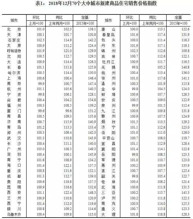16日,國家統(tǒng)計局公布的“2018年12月份70個大中城市商品住宅銷售價格變動情況”顯示,雖然一線城市新房價格年底有所上漲,但二三線城市房價保持穩(wěn)定。