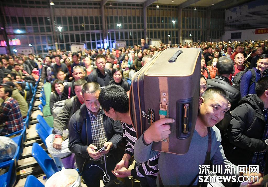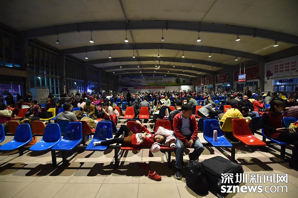 深圳西站候車廳幾乎坐滿乘客,據(jù)統(tǒng)計有近2400多人乘坐該班次列車