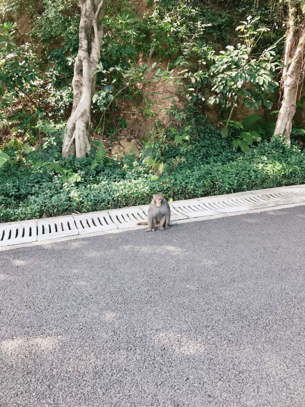 "這個東西很聰明,愛吃蘋果、香蕉和糖果,估計有三四十斤重,很肥。"今天上午,記者前往梅林山公園探訪猴子的蹤影。從梅山苑二期的梅林山公園入口一上公園主干道,記者就發(fā)現(xiàn)保安員陳先生正在路邊值守,梅林山公園管理處發(fā)現(xiàn)猴子后,就安排了保安員巡查看護(hù)。陳先生告訴記者,20日早上7點(diǎn)多猴子就出現(xiàn)在路邊,當(dāng)時公園人少,沒有討到吃的就走了。上午10點(diǎn)多,乘著游玩的人多猴子又跑出來湊熱鬧,保安員發(fā)現(xiàn)后拿了香蕉、橘子和糖果給它,猴子也一點(diǎn)不客氣,從人手里接過來就吃。原本靜謐的公園隨著猴子的出現(xiàn)熱鬧起來,圍觀的市民也紛紛慷慨解囊。這只胖乎乎的猴子一點(diǎn)也不怕人,最近時距離人不到一米遠(yuǎn),大家也親切叫它"肥仔"。
