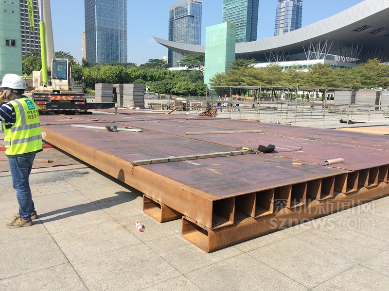在市民中心南廣場搭建春晚深圳分會場舞臺,借助深圳燈光秀為背景,確實是一個絕佳的創(chuàng)意。要實現(xiàn)創(chuàng)意,搭建舞臺是關(guān)鍵一役。去過南廣場看燈光秀的深圳人應(yīng)該知道,南廣場中間位置正好是地下車庫的玻璃采光棚,春晚主舞臺剛好就位于廣場玻璃采光棚的正上方。玻璃材質(zhì)決定了它無法承受上部集中荷載,需要事先改變傳力路徑或?qū)龅叵虏苛喊暹M行加固處理,謝衛(wèi)兵和同事發(fā)現(xiàn),研究舞臺局部可操作性的加固方案迫在眉睫。