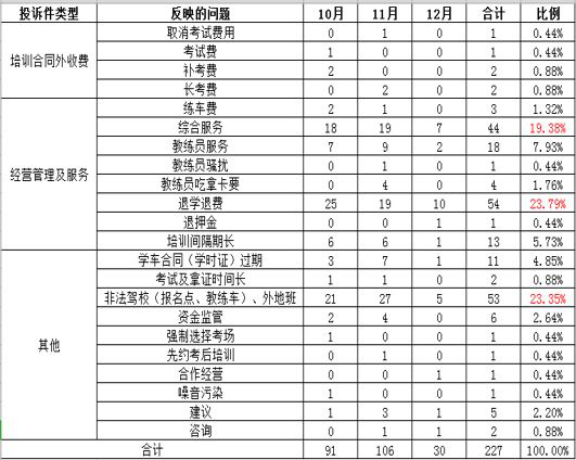 2018年第四季度投訴類別統(tǒng)計(jì)一覽表