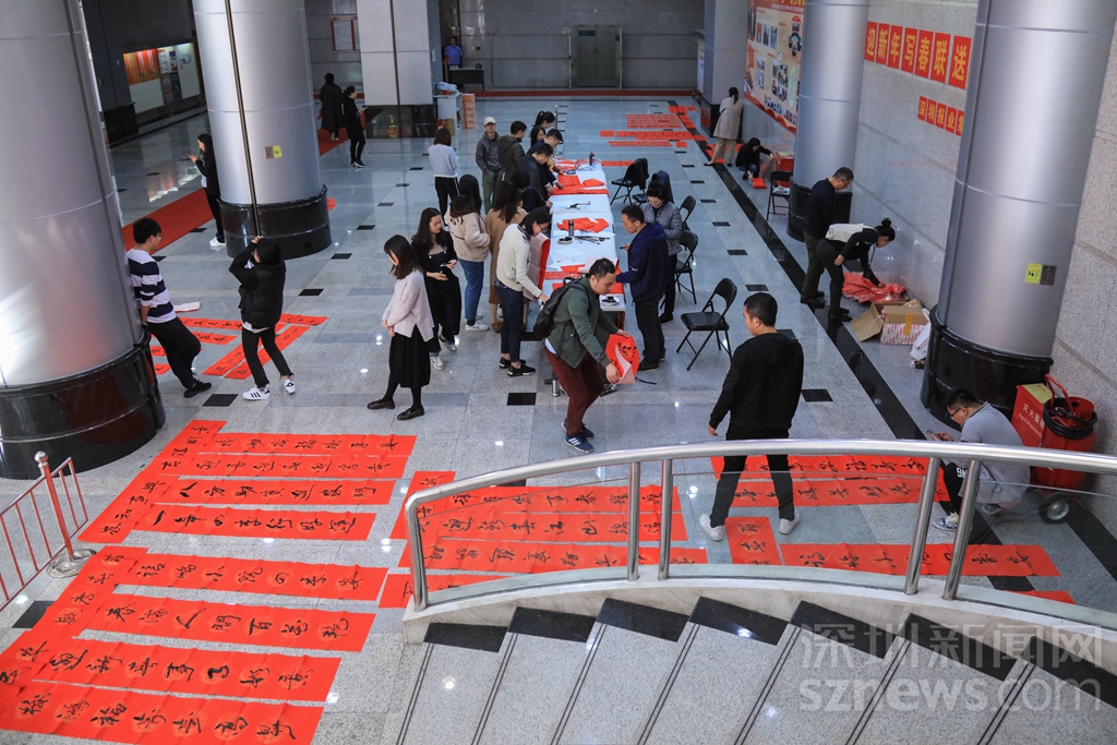 深圳商報(bào)大廈一樓變成春聯(lián)的世界