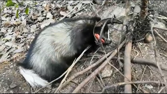 1月28日,市民馬先生在光明阿婆髻山登山時,發(fā)現一只野生動物被偷獵者的鐵夾子夾住了