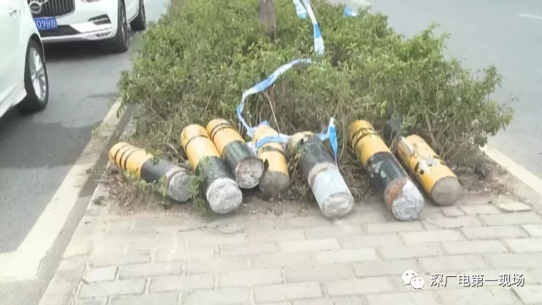 這一撞還不算完,車輛帶著慣性接連沖斷了交通信號(hào)燈和整整6根碗口粗的交通隔離柱,隨后才在綠化隔離帶里停了下來。