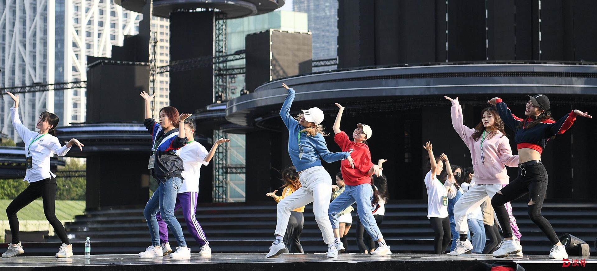 “你們的目光所及都是舞臺(tái)!”當(dāng)記者當(dāng)天下午來(lái)到市民中心廣場(chǎng)時(shí)彩排,分會(huì)場(chǎng)總導(dǎo)演孫濱指著搭建的主舞臺(tái)、舞臺(tái)前方的階梯和廣場(chǎng)、以及舞臺(tái)后方的高樓大廈這樣說(shuō)。