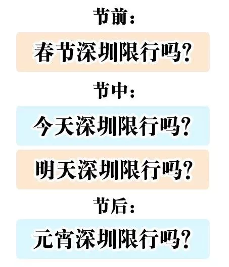 1月29日至2月19日期間(農歷臘月二十四至正月十五),允許所有非深號牌小型載客汽車在深圳全市全時段通行。