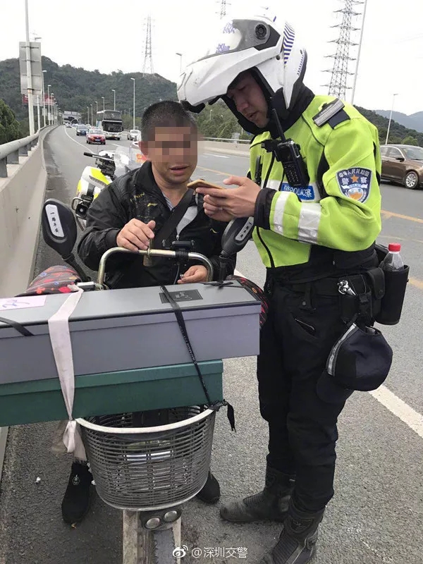 2月14日上午,深圳交警巡邏至南坪快速長(zhǎng)嶺陂大橋時(shí)發(fā)現(xiàn)一輛非機(jī)動(dòng)車(chē)上快速路。上前詢問(wèn)后得知,男子是幫客戶送禮物的,不料卻迷路了,這才誤闖了快速路。蜀黍?qū)ζ浣逃?,迅速將?dāng)事人護(hù)送下快速路路口。