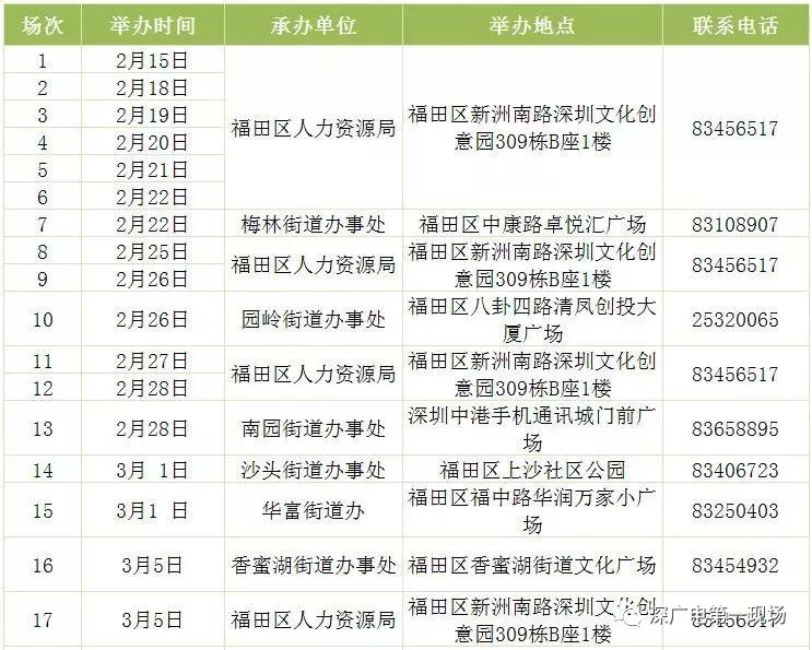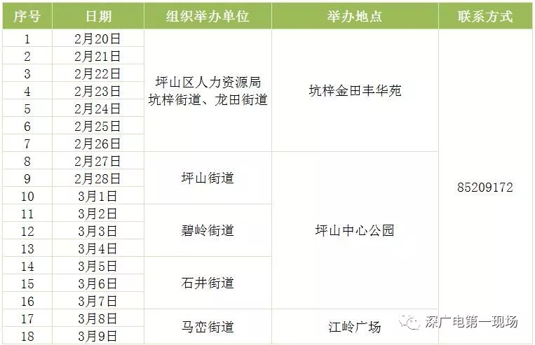 其中,深圳市公共就業(yè)服務中心26場,福田區(qū)27場,羅湖區(qū)40場,鹽田區(qū)14場,南山區(qū)9場,寶安區(qū)22場,龍崗區(qū)60場,龍華區(qū)56場,坪山區(qū)18場,光明區(qū)25場,大鵬新區(qū)9場。