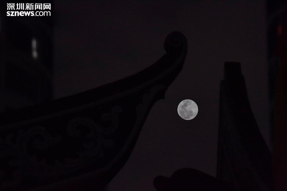 新洲一祠堂的傳統(tǒng)屋檐和月亮遙相呼應(yīng) (圖為雙重曝光)