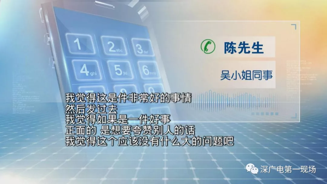 深廣電第一現(xiàn)場2019年2月19日訊 今年20多歲的吳小姐是深圳一家公司的員工。昨天晚上,吳小姐打開了公司的微信工作群,發(fā)現(xiàn)她的同事陳先生在工作群,發(fā)布了吳小姐之前參加選美比賽的相關(guān)宣傳報道,和領獎時候的照片,這讓吳小姐一下子驚呆了。