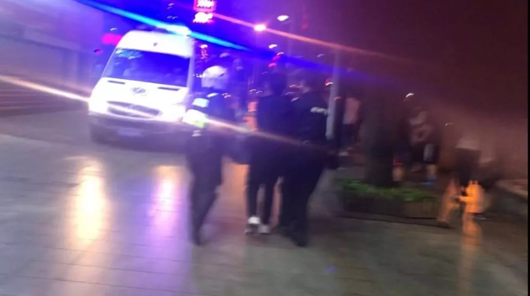 救護(hù)車趕到現(xiàn)場(chǎng),隊(duì)員們爭(zhēng)分奪秒將男子抬上救護(hù)車。